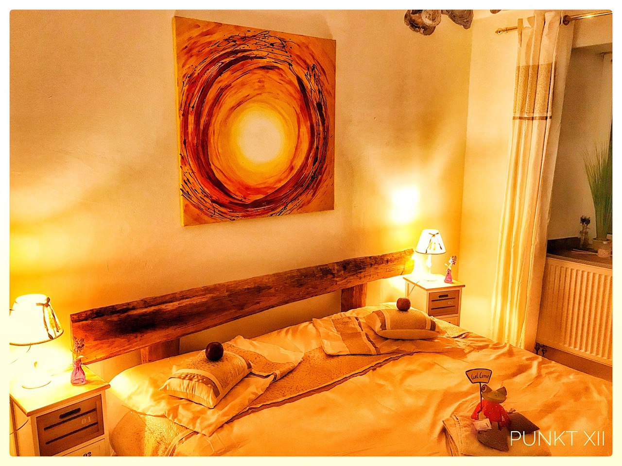 Das Zimmer befindet sich in einer neu renovierten und modern eingerichteten Wohnung 8, die Teil des Seminarhauses „Punkt XII“ ist. Das Zimmer ist modern und gemütlich in warmen Farben und angenehmer Beleuchtung gestaltet. Das dazugehörige Bad schließt sich direkt dem Zimmer an und sorgt für absolute Privatsphäre. Die schönen Fliesen und geschmackvollen Armaturen machen das Zimmer zu einem Ort zum rundum wohlfühlen.